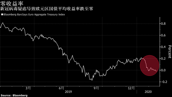 彭博巴克莱欧元区综合国债指数的平均收益率为0%,接近9月份创下的历史最低点-0.17%。那些以更高收益率发行债券的政府正在看到创纪录的需求。