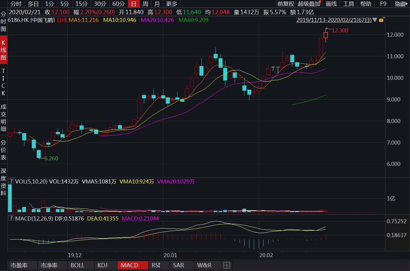 2019年11月13日,中国飞鹤正式在港股上市,发行价为7.5港元/股。中新经纬记者注意到,截至2月21日收盘,中国飞鹤报12.10港元/股,总市值达1081亿港元,在港股80家食品饮料上市公司中排名第四,仅随蒙牛乳业(1163亿港元)之后。