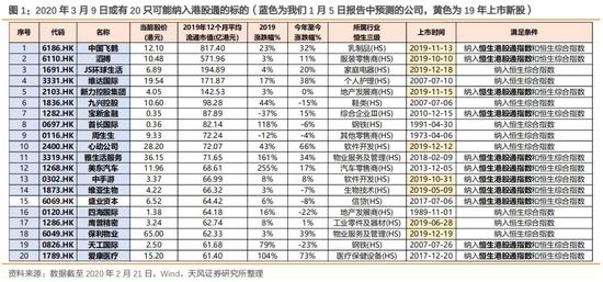 2、【天风海外】港股通预测:18只或进,以新股为主 2020-01-05