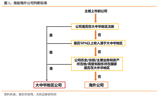 外国公司主要指注册地以及主要业务地点于大中华地区以外的公司,判定一家公司的业务是否以大中华为重心的考虑因素包括:1)公司在何地注册成立;2)公司的历史;3)公司的总部位于何地;4)公司的中央管理及控制所在地;5)公司的主要业务营运及资产所在地;6)公司主要管理人员及控股股东的国籍或居住国家。例如,金界控股(3918.HK)由于公司总部及主要业务在柬埔寨,因此为主板第一上市的外国公司,虽然在2018年10月被纳入到恒生综指中,但因外国公司无法进入港股通中。相反,太阳城集团(1383.HK)虽博彩业务主要在亚太地区,但总部设在香港,并在澳门拥有旅行社业务、同时在内地拥有物业资产,所以属于大中华地区公司,目前为恒生综指和港股通中标的。