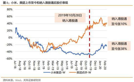 依据上述原则,港股通调整规则可以解读为:12个月平均流通市值高于50亿港元的恒生综指中的普通股票。按目前规定,已在恒生综指中的REITs、外国公司(包括金界、普拉达、俄铝等)、合订证券尚不能被纳入港股通。随着上交所、深交所于19年10月18日起修订港股通业务实施办法,小米和美团为代表的同股不同权公司已可纳入港股通,并于19年10月28日起生效。