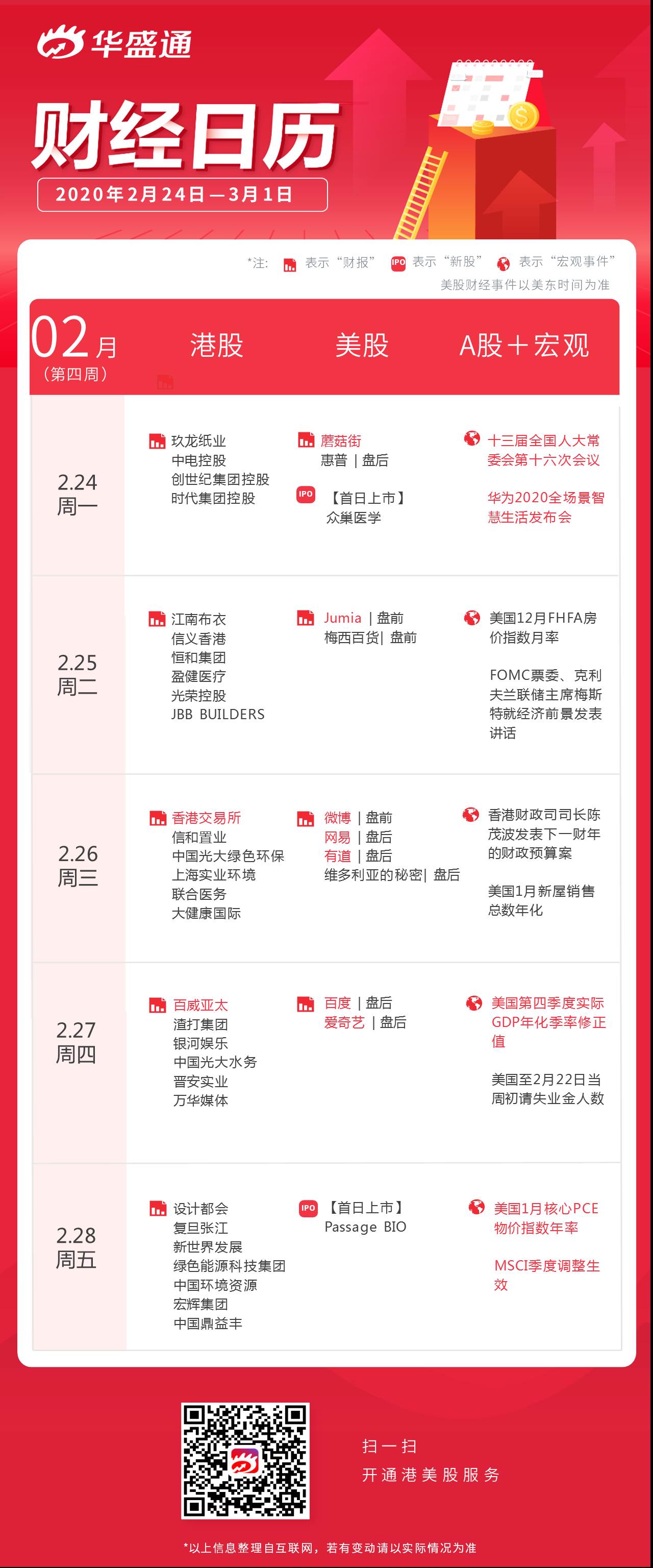以上即为本周港美股、A股及宏观资讯一览,祝新的一周投资顺利~点击“日历”专区,了解本周更多财经大事↓