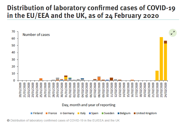 欧洲疾病预防控制中心(ECDC)发声明指出,目前未来几天在意大利,乃至在欧盟都会出现更多新冠肺炎患者,ECDC对目前在欧盟和英国的居民感染新冠病毒的风险评估为“低到中级”。