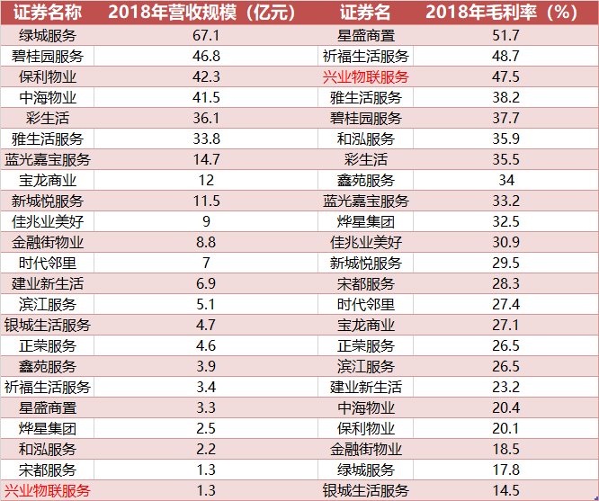 值得一提的是兴业物联的毛利率水平很高,2018年其毛利率高达47.5%。这在已经上市的港股物业股和已经递表的物业股中排名前列,超过知名的物业公司雅生活服务、碧桂园服务等。
