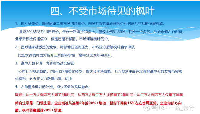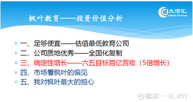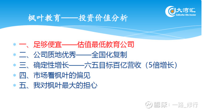 总结:当下枫叶是一个非常便宜、公司质地优秀、后续五年有5倍预期发展空间的投资机会,适合稳健资金长期配置。