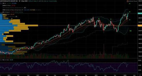 相反,持有的第一个重要支撑是接近每股269美元。这将意味着下跌9%,并有机会用UNH来换取反弹。如果看跌者能够跌破这一点位,那么风险将再低10美元。低于250美元,有太多的支持,这将是一个很好的切入点,为新的职位和增加现有的。联合健康是一只便宜的股票,预期市盈率为18倍。该公司的股价仅为其销售额的1.2倍。即使经济不景气,也没有太多的脂肪需要修剪。