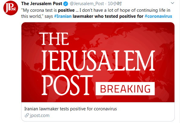 【环球网快讯】《耶路撒冷邮报》刚刚消息称,伊朗一名国会议员称自己的新冠病毒核酸检测呈阳性。