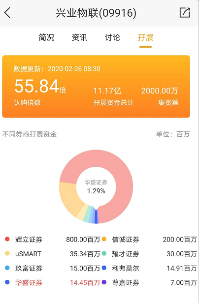 华盛资讯2月26日讯,兴业物联(09916.HK)认购第二天截至早上8:40,公开发售部分孖展倍数已达55.84倍,辉立、华盛等券商共计为其借出11.17亿港元。兴业物联昨日开启招股已获超额认购。当前距离认购结束还剩2天。