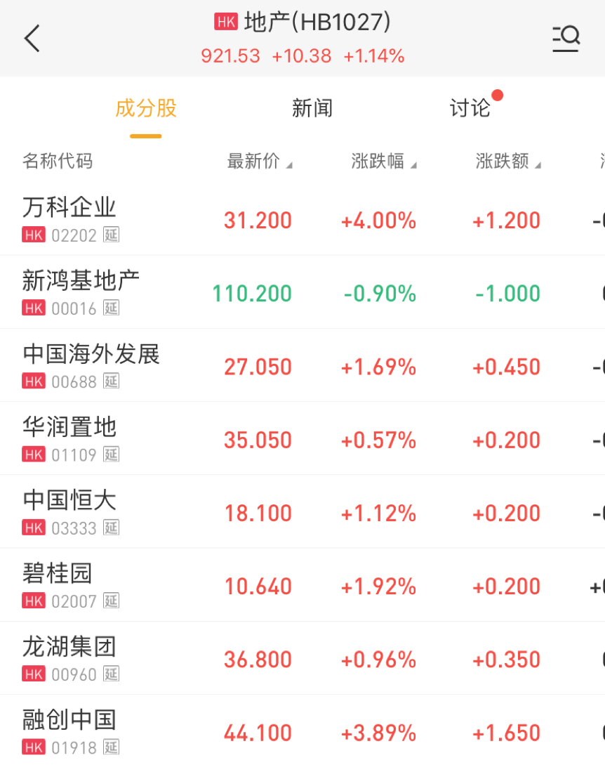 华盛资讯2月26日讯,地产板块盘中异动,内房股逆市集体走强。截至发稿,万科企业大涨4%,报31.2港元;融创中国大涨3.89%,报44.1港元;碧桂园涨1.92%,报10.64港元;中国恒大涨1.12%,报18.1港元;中国海外发展涨1.69%,报27.05港元。此外,中国奥园、世贸房地产等内房股亦录的不低涨幅。