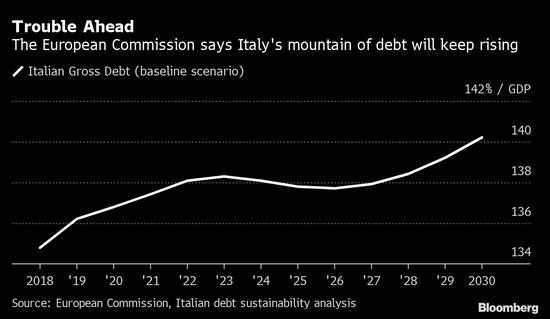 “意大利每年需要结转大量债务,约占GDP的20%,使得意大利的公共财政依然面临金融市场避险情绪激增的风险,”欧盟委员会说。“较高的偿债成本还减少了实施促增长和反周期政策的财政空间。”
