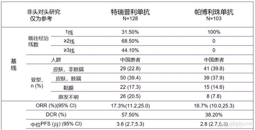 智通财经APP了解到,通过将两个针对中国黑色素瘤患者的独立单臂注册研究进行横向结果比对发现,特瑞普利单抗ORR达到17.3%、DCR达到57.5%、中位PFS则达到3.6个月,以上数据均优于K药的治疗数据。