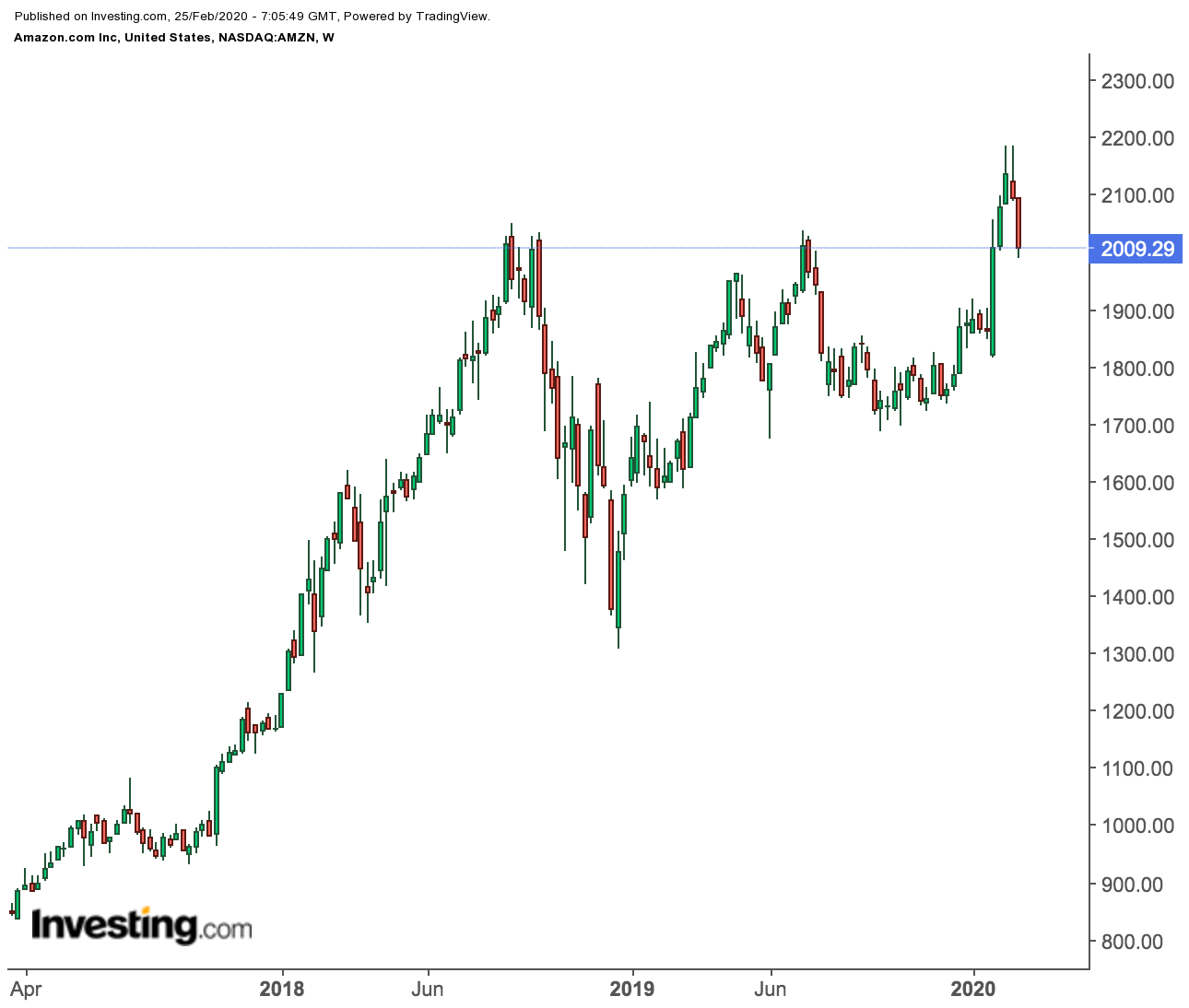 美国最大的零售电商亚马逊 (NASDAQ:AMZN)周一暴跌了5%以上,周二再跌1.8%,是顶级科技公司中受影响最严重的股票之一。亚马逊投资者最大的担忧是,如果国内企业不能尽快恢复正常运营,亚马逊可能会面临供应短缺的情况。