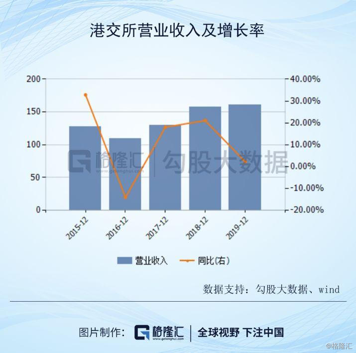 2月26日晚,香港交易所(0388.HK,以下简称为港交所)发布2019年财报——营业收入163亿港元,同比增长3%;EBITDA(税息折旧及摊销前利润)为122.63亿港元,同比增长4%;归母净利润93.91亿港元,同比增长1%。