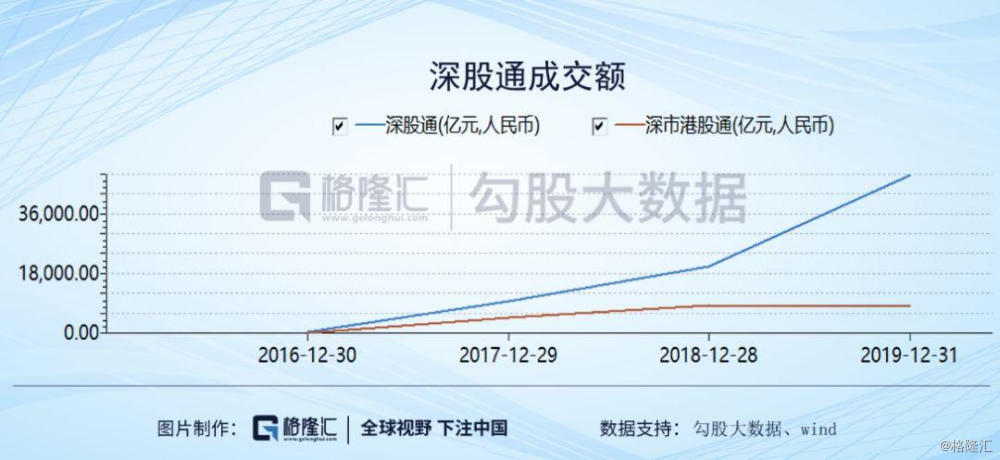 2019年北向交易总成交额达人民币97570亿元,打破2018年创下的纪录,升幅达109%;南向交易成交额则达24810亿元,升幅达133%。
