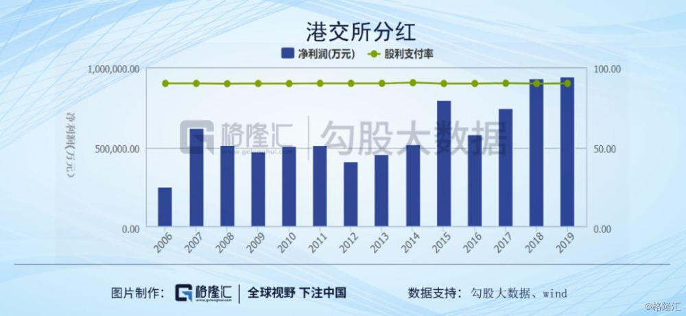 2006年至今,港交所已经累计实施现金分红14次,累计实现净利润709.38亿港元,累计现金分红638.54亿港元,分红率90.01%。