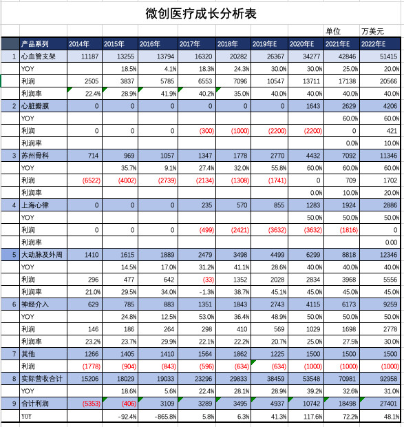 现在的微创,营收并不牛逼,可以经过十年的超级研发投入,把冠脉支架本来可以赚的营收40%利润几乎全部投入研发及并购了,还为了借此许多债,还得对外融资。现在研发的成果开始大批量面世了,开始准备占据高值器械几乎所有主要赛道,大部分产品性能要么国内国内第一,要么唯一。