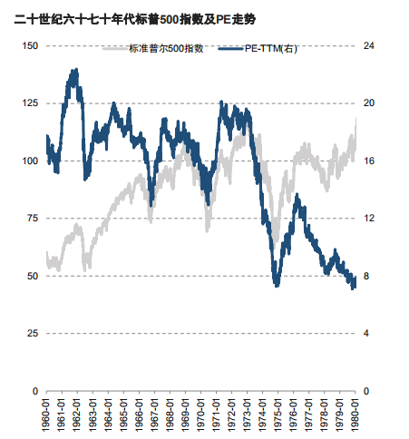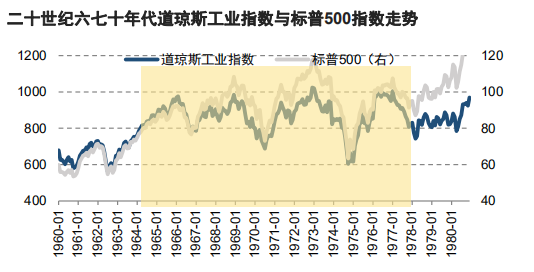 在经过了不同投机之风的洗礼后,投资者反思股市投资策略,矫枉过正后,市场迎来了漂亮50行情。 虽然漂亮50成分股都有较好的业绩作支撑,但面对不断攀升的估值水平、美国国内逐步抬头的通胀以及美联储开启加息操作,整体性行情在持续两年之后被终结。 为了治理国内通胀,美联储不断加息,同时美国还面对经济实力的减弱,道琼斯指数在1973-1974年大幅下探,两年下跌了41.92%。随后指数开始震荡攀升,直至1980年才重新进入上行通道。