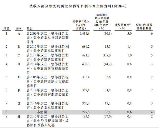 但煜盛文化在行业凛冬中顶住压力,在收视率上有所突破,可见市场对于其节目内容有积极反响,至少在内容创作效率和质量上煜盛都是过关的。
