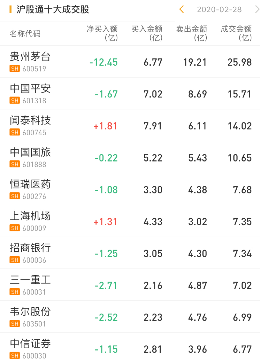 北上资金今日净流出24.26亿元,沪股通净卖出贵州茅台12.45亿元,净卖出中国平安1.67亿元,净卖出恒瑞医药1.08亿元。