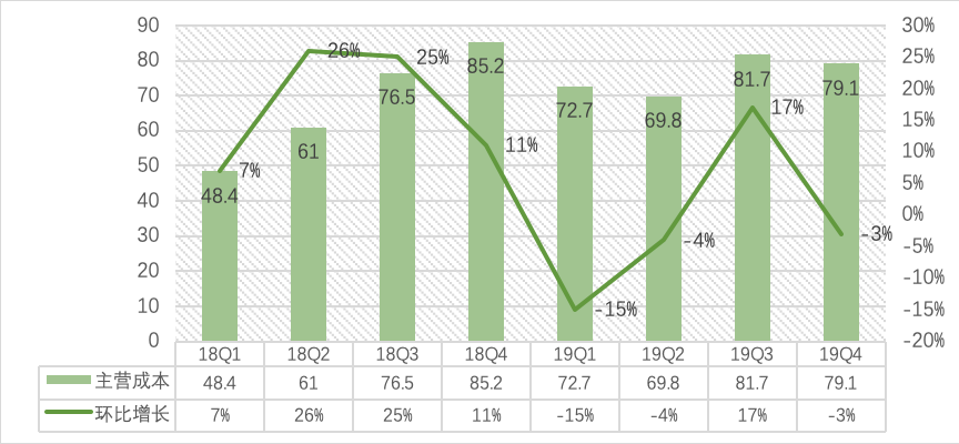 首先,可喜的是成本端的表现。得益于内容成本的下降,爱奇艺Q4主营成本为79亿元,同比减少7%,环比也下降了3%。2019年全年主营成本达到303.48亿元,较去年同期的271.32亿元增长了11.85%,低于营业收入的增长,在成本控制方面的表现可圈可点。