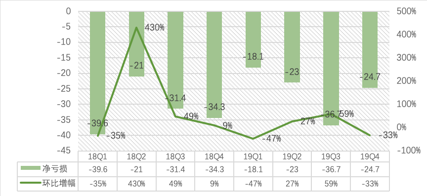 最后是净亏损方面。爱奇艺Q4净亏损24.7亿元,同比减少28%,环比33%,亏损幅度有了大幅改善。2019全年,爱奇艺净亏损102.7亿元,较去年90.6亿元的净亏损扩大了13.3%,并且2019年运营亏损就达到92.5亿元;全年的亏损幅度仍然惨不忍睹,并且目前爱奇艺拥有的现金及等价物(包括限制性用途资金及短期投资)仅115亿元,如果不能控制成本扩大收入来改善利润水平,公司在财务上会面临比较大的压力。