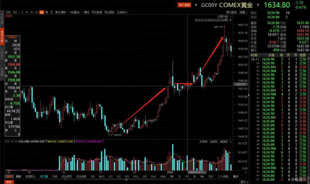 在新冠疫情等多重事件刺激下,避险属性推助金价不断上行,2月24日亚市盘初,现货黄金涨幅扩大,刷新逾七年高点至1679.70美元/盎司。COMEX黄金也在盘中逼近1700美元/盎司。