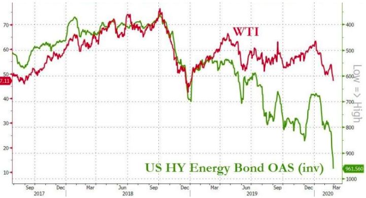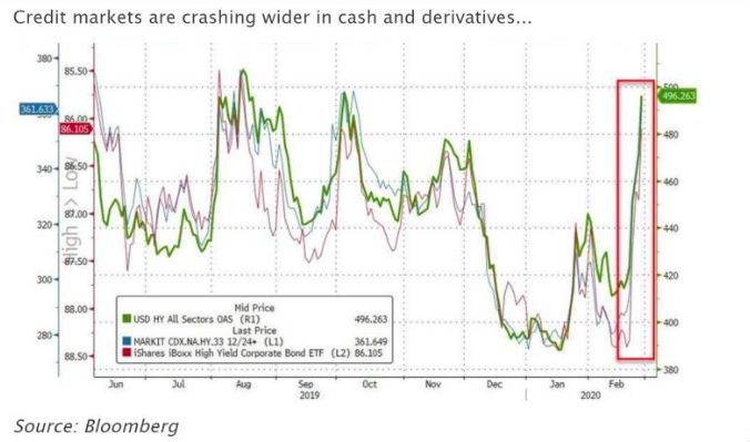 如下图所示,由于担心疫情对出行的影响,能源债券大跌。同时,流动性也受到重大影响。随之而来的很可能是就业率走低以及个人资产负债表恶化。