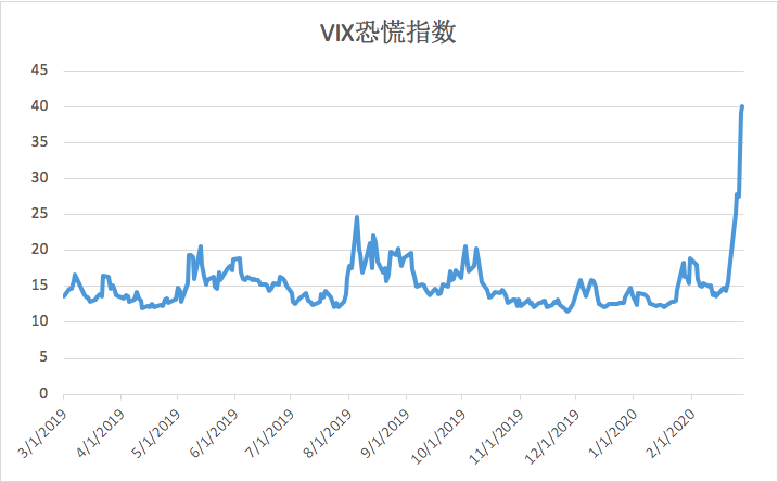 股指狂泻,只有恐慌指数VIX在“狂欢”。一周内,增长近两倍。VIX指数背后隐藏的含义是,投资者对风险规避的意愿程度。当VIX指数上涨,则表示投资者更愿意进行风险的规避操作,如购买看跌期权等方式。当然,VIX指数下跌,意味着投资者处于乐观,且风险偏好增加。当然,对极端的状态来说,无非是极度恐慌或过度乐观。对比当下,可近似看作为“极度恐慌”状态。