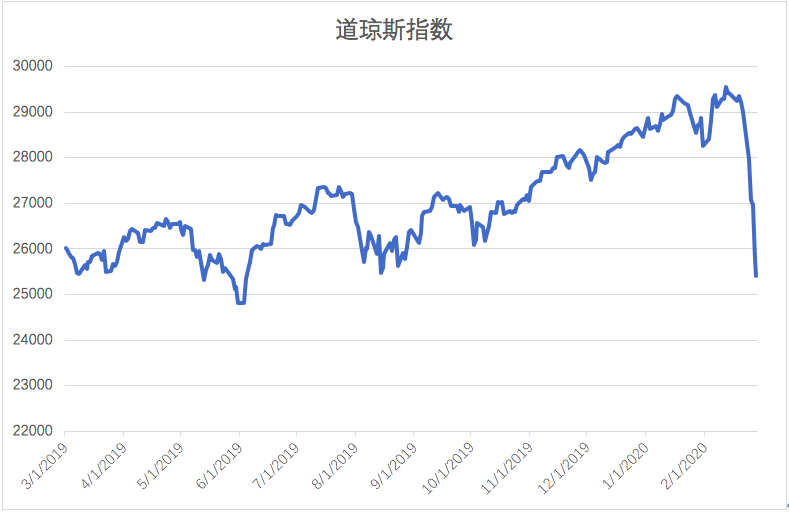 北京时间2月28日(周五)晚,美股开盘,三大股指再次集体大幅低开,延续了之前的暴跌之势。粗略计算,自2月12日高点至周五收盘,道琼斯指数下跌4142点,跌幅达到14%,基本在短短不到两周的时间内把从2019年道指至今的涨幅抹平了。