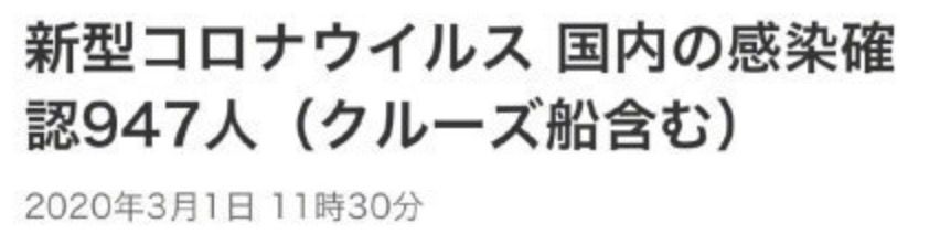 据日本厚生劳动省消息,截至日本时间3月1日10点30分,日本国内新冠肺炎确诊感染者共947人,其中日本国内的感染者和从中国来日旅游的感染者人数为228人、“钻石公主”号邮轮上确诊的感染者人数为705人、乘包机回国的感染者人数为14人。其中死亡人数11人。