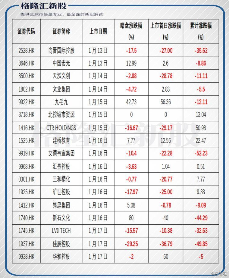 也可以说,正是在这两只资质相对不错的个股的吸引下,不少资金涌入港股新股市场,让去年11月份阿里巴巴回归港股以来的打新热度得到了延续。以1月13日到17日集中上市的17只新股为例:九毛九(9922.HK)认购637倍,新石文化(1740.HK)认购1212倍,艾德韦宣(9919.HK)认购114倍,驴迹科技(1745.HK)认购85倍。