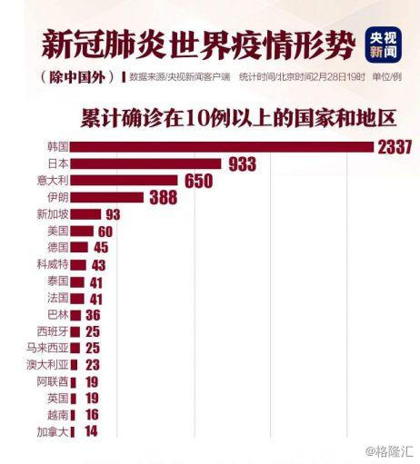 但国外地区,尤其是韩国和意大利的疫情大规模蔓延,且确诊人数持续上涨的态势,让全球资本市场的不确定性继续加大。截至2月28日19时,韩国已累计确诊2337例,意大利也后来居上,确诊650例。