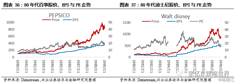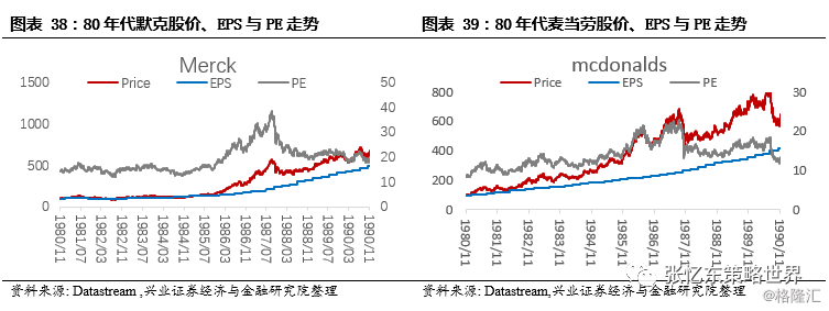 3)股灾对核心资产股价的影响,只是成长途中的一个小波折。遭遇1987年股灾,标普指数在两年后才回到股灾前的高位,但是,百事、迪士尼、默克、麦当劳、强生、沃尔玛等等代表性企业,1989年的股价远远超过了87年的顶点。