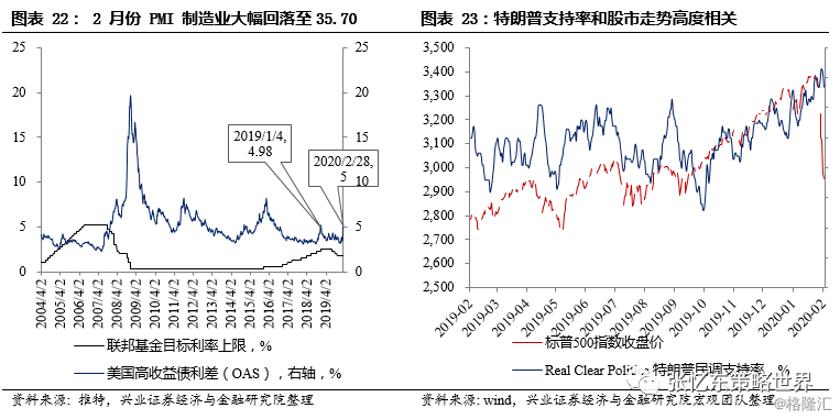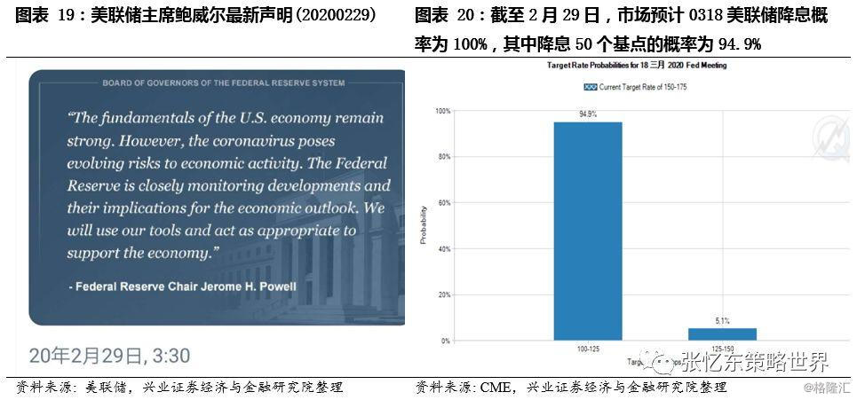 截至本周五(2月28日),美国高收益利差已经高达5.0%,和2018年年末水平接近,所以,在信用环境恶化的约束下,美联储大概率会进一步宽松,甚至在3月18日美联储议息会议之前做出提供短期流动性的宽松政策。