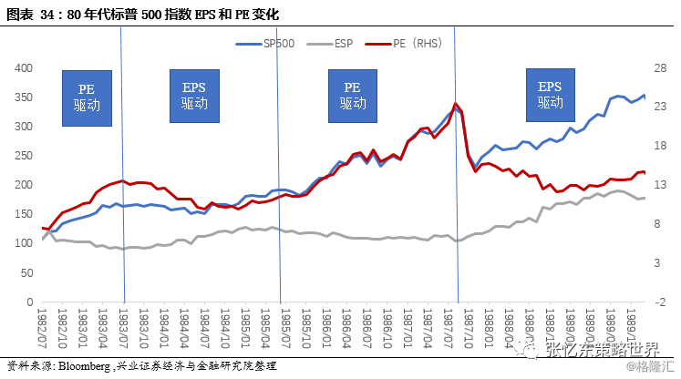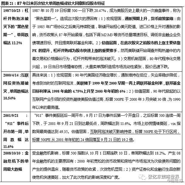 1)1987年股灾:美股估值PE从23倍回落至16.84倍