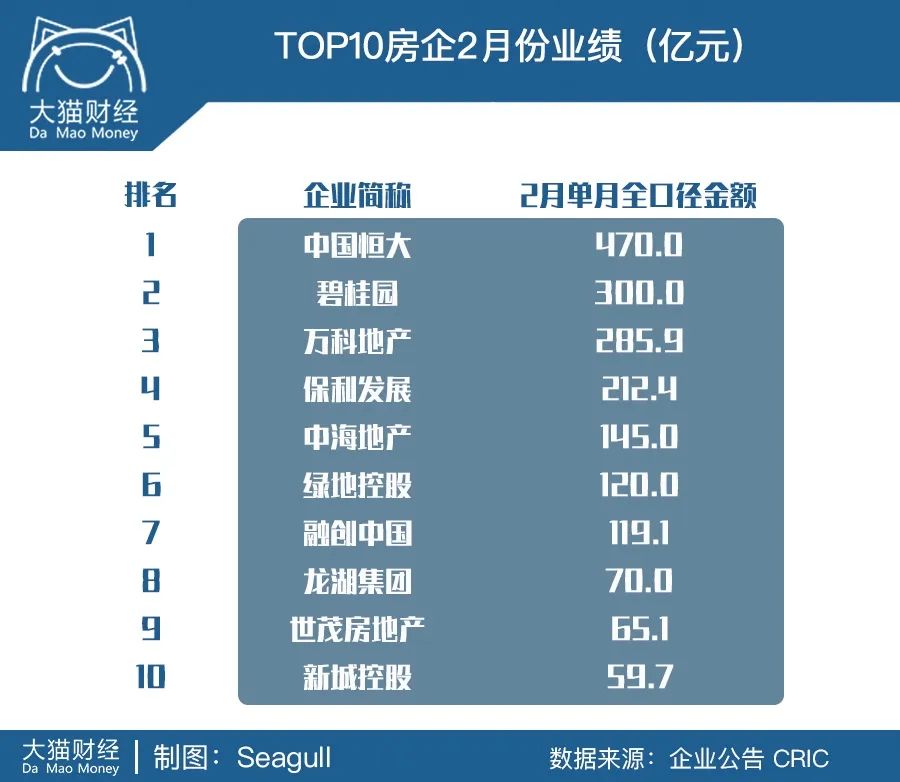 房企2月份的销售成绩单已经出来了,毫无悬念,恒大是最大的赢家。