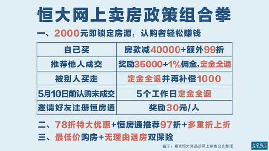 除了用超低折扣点燃购买欲,恒大还大幅降低定房的“上车”门槛,购房者仅需2000元即可“入市”,而且不管你买不买房,都能“稳赚不赔”: