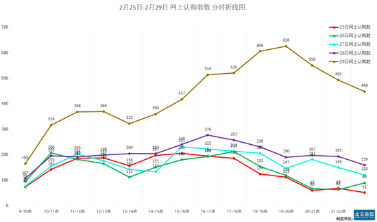 刘雪飞还介绍,为了及时了解“网上卖房”成交情况,恒大对2月13日-29日以来网上认购情况进行实时数据追踪,细致到每个小时的网上认购套数都能清晰掌握。