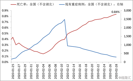 在新冠病毒疫情初期,有声音认为新冠病毒的死亡率(湖北省之外)明显低于H1N1,甚至普通流感,不值得付出这么大代价来防控。但随着疫情发展,数据的更新,这种观点已经站不住脚了。即使按湖北省外的确诊病例计算,新冠病毒的死亡率也已经达到0.84%,考虑到现有的重症病例已经下降到较低水平了,死亡率进一步上升的空间很小了。即使考虑到每次疫情数据统计都存在一些误差,0.84%的死亡率也足以说明新冠病毒的危险性明显高于普通流感和H1N1。