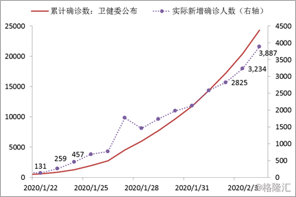 当时提出的观点:新增确诊病例数急剧攀升是因为检测确诊效率的提高和前期积压了大量待检测患者,预计将很快回落。事后的确诊数据和媒体报道都印证了我们当时的判断,即由于确诊能力不够,前期积压了大量的待检测病人。
