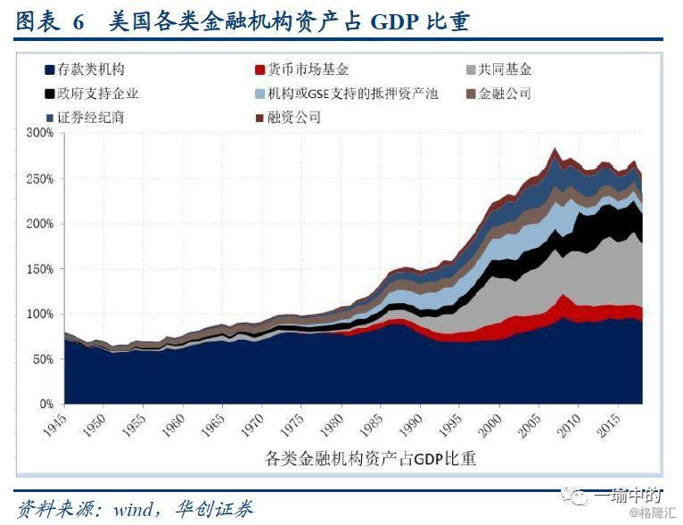 对于金融部门而言,整体杠杆回落明显,且银行、货币基金、抵押资产池、证券经纪商等都是相对GDP增速回落的,仅有共同基金规模大幅扩张,占到金融部门资产总量的三分之一左右。因此结合居民部门的健康情况,我们可知,“居民杠杆爆掉→地产暴跌→抵押缩水→银行破产”链条的风险系数较低,共同基金的交易波动更加值得关注。
