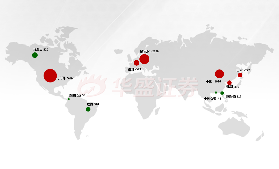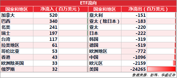 在国家和地区角度,美国市场掉出一向霸占的资金净流入最多的榜首位置,直接垫底成为资金流出最多的市场。受疫情影响较为严重的亚洲、欧洲地区也呈现大幅资金流出,反而加拿大、巴西等地出现资金流入。
