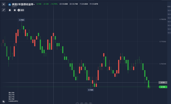 各国国债收益率跌幅加大。美国2年期国债收益率日内跌14.26%,报0.753%,刷新2016年末以来新低;美国3年期国债收益率下跌12.61%,报0.761%;美国5年期国债收益率下跌8.07%,报0.838%。英国2年期国债收益率跌至2017年9月以来最低水平,当日跌超10个基点至0.23%。英国10年期国债收益率料创最长连跌纪录。