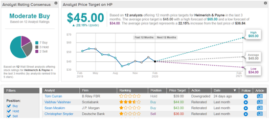 截至第一季度,赫尔默里奇和佩恩公司持有现金超过3.55亿美元。雄厚的财力使公司得以将其丰厚的股息维持在每股71美分的季度水平。并且在过去的两年里一直保持稳定。年化收益率为2.84美元,高达7.7%,几乎是标普500上市公司平均股息收益率的四倍。