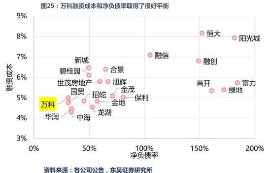 从下图的统计(来自2018年年报的数据)可知,万科资金成本是主流房企中相对较低的。