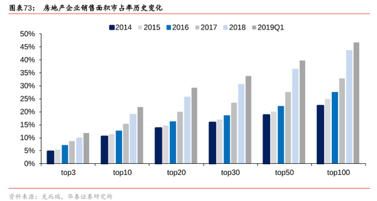 在这样相对激烈的竞争中,中小房地产企业的份额不断被蚕食,而大型房企份额则不断提升:
