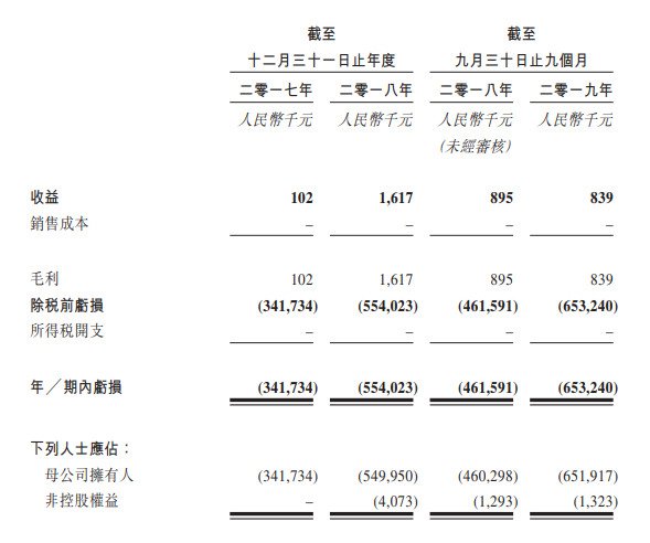 截至2017年及2018年12月31日止年度以及截至2019年9月30日止九个月,公司的研发开支分别为人民币6290万元、人民币1.5亿元及人民币1.48亿元。