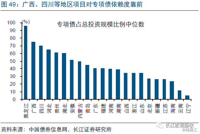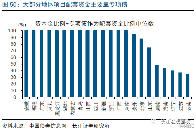 (6)不仅资本金比例高,项目配套融资主要来自专项债;高杠杆和财政收支压力,进一步掣肘基建的能力和空间。专项债占项目总投资规模的比例中位数为40%,资本金和专项债作为配套资金合计比例大多接近100%。除项目质量外,地方高杠杆也拖累专项债等资金利用效率;财政收支平衡压力,进一步形成掣肘。