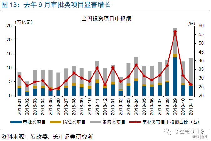 各地专项债发行进度,与前期项目申报的地区分布较为匹配。去年9月初国常会强调,按照“资金跟项目走”的要求,专项债额度向手续完备、前期工作准备充分的项目倾斜,使得去年9月发改委审批类项目申报额大幅增长,其中云南、山东、四川、江西、湖南等项目申报增幅较大(详细分析参见《区域视角,看“稳增长”空间?》)。而这些地方也是今年专项债发行进度较快的地区,今年已发行专项债占去年全年的比重,与去年9月审批类项目较前8个月均值增长幅度,呈一定线性关系。