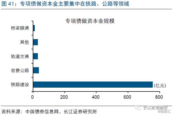 专项债做资本金规模明显增加,主要集中在铁路、收费公路、轨道交通等基建领域,但专项债作为资本金的比例总体不高。去年9月初召开的国常会,明确要求扩大专项债作为资本金使用范围,有利于今年专项债做资本金规模的扩大。据不完全统计,截至2月底,专项债做资本金的规模达859亿元,主要集中在铁路、收费公路、轨道交通领域,其中铁路项目专项债做资本金规模达755亿元;地区分布上,广东、山东、云南等地规模居前。如果考虑项目总投资规模,专项债资本金比例大多不高,54%样本低于10%,其中铁路、收费公路项目中位数均在2%附近。